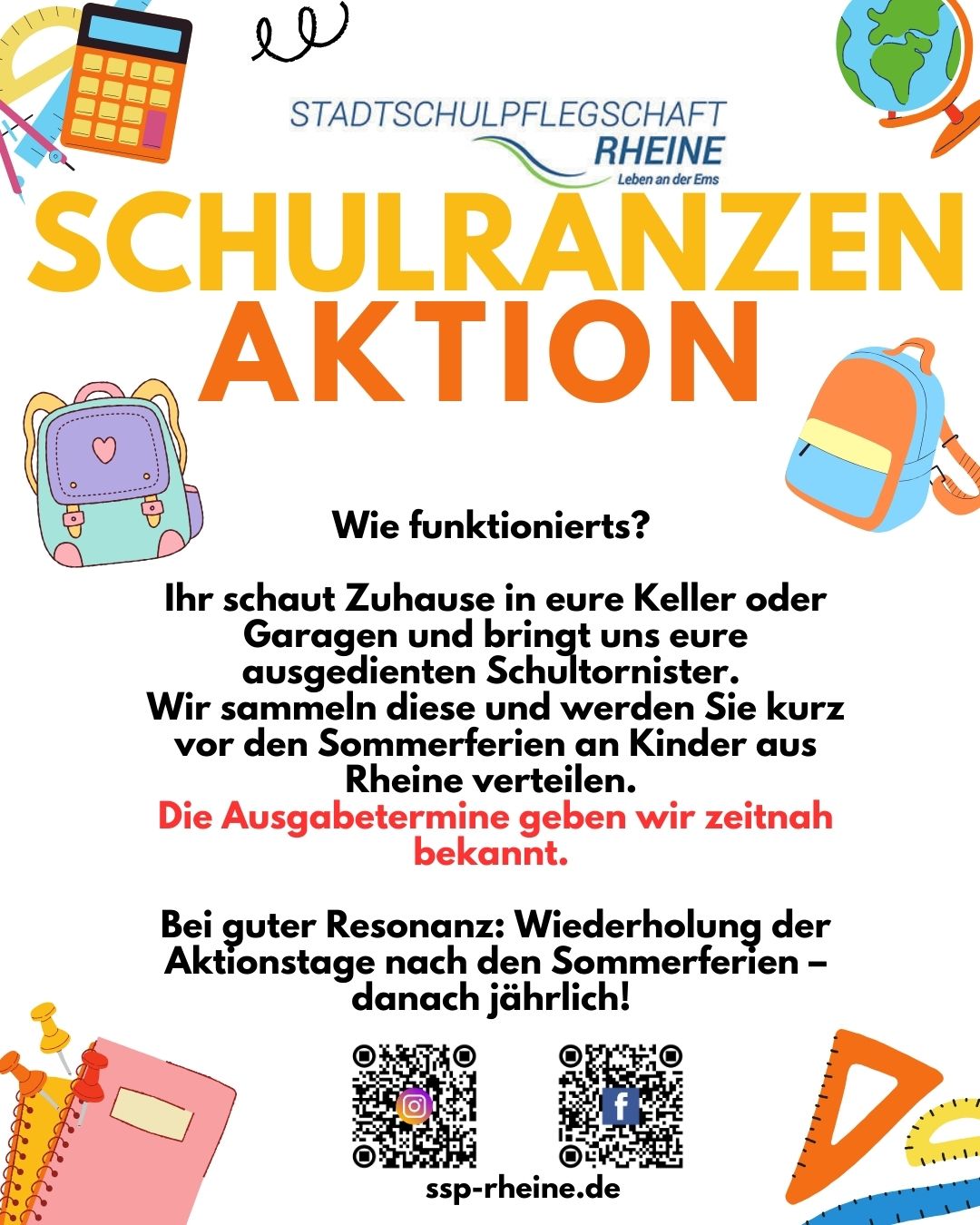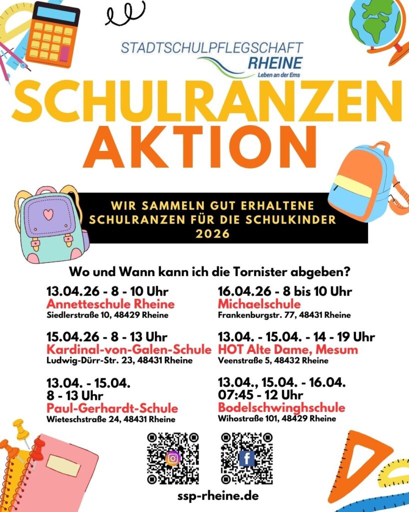 In diesem Jahr startet unsere Schulranzen-Aktion als neues Pilotprojekt: Wir sammeln gut erhaltene Schulranzen für Kinder in Rheine, die zum Schulstart Unterstützung benötigen. Viele Familien haben noch ausgediente Tornister im Keller oder in der Garage, die nicht mehr genutzt werden – genau diese können für andere Kinder eine große Hilfe sein!